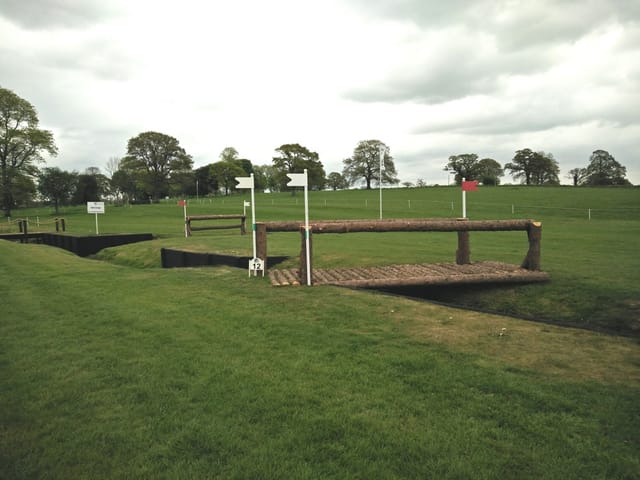 Massive angled spread over a ditch that should make spectacular pictures and harks back to the ‘rider-frighteners’ of the 1970s and 1980s.